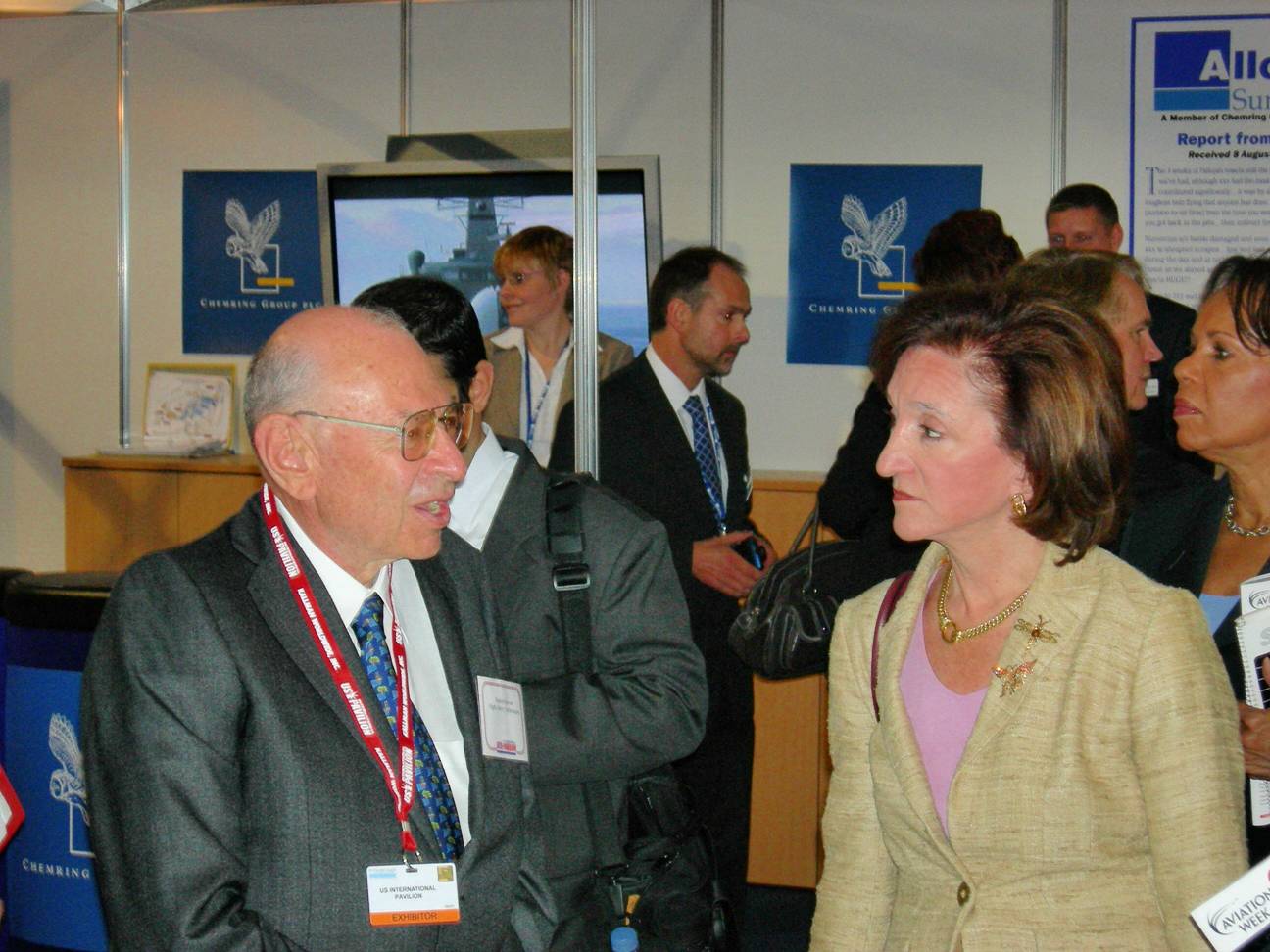 Samuel A. Kovnat, left, speaks to Marion Blakey,