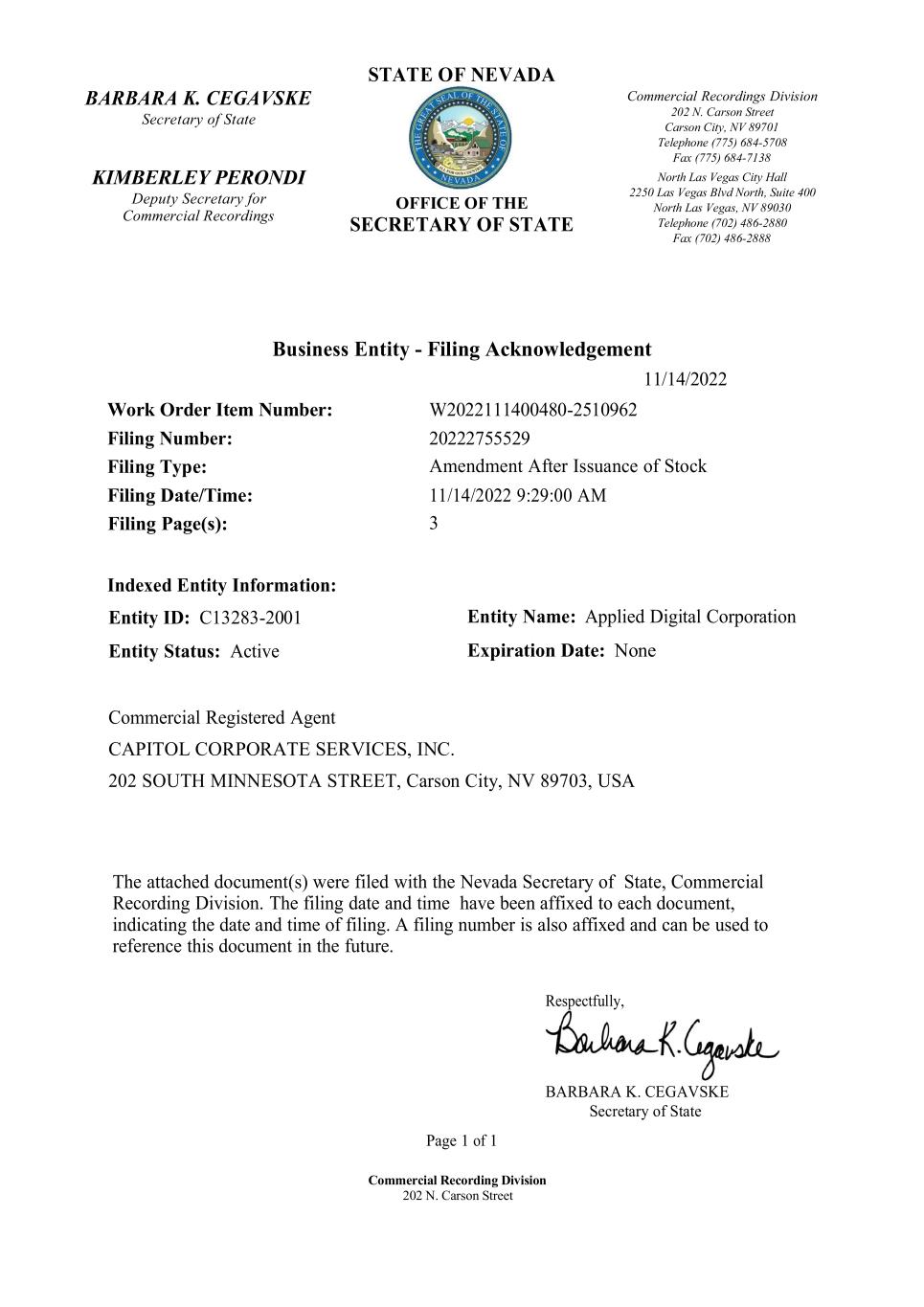 Þ«·²» Û²¬·¬§ ó Ú·´·²¹ ß½µ²±©´»¼¹»³»²¬ ïïñïìñîðîî ɱ®µ Ñ®¼»® ׬»³ Ò«³¾»®æ Éîðîîïïïìððìèðóîëïðçêî Ú·´·²¹ Ò«³¾»®æ îðîîîéëëëîç Ú·´·²¹ ̧°»æ ß³»²¼³»²¬ ߺ¬»® ׫¿²½» ±º ͬ±½µ Ú·´·²¹ Ü¿¬»ñÌ·³»æ ïïñïìñîðîî çæîçæðð ßÓ Ú·´·²¹ п¹»ø÷æ í ײ¼»¨»¼ Û²¬·¬§ ײº±®³¿¬·±²æ Û²¬·¬§ ×Üæ Ýïíîèíóîððï Û²¬·¬§ Ò¿³»æ ß°°´·»¼ Ü·¹·¬¿´ ݱ®°±®¿¬·±² Û²¬·¬§ ͬ¿¬«æ ß½¬·ª» Û¨°·®¿¬·±² Ü¿¬»æÒ±²» ݱ³³»®½·¿´ λ¹·¬»®»¼ ß¹»²¬ ÝßÐ×ÌÑÔ ÝÑÎÐÑÎßÌÛ ÍÛÎÊ×ÝÛÍô ×ÒÝò îðî ÍÑËÌØ Ó×ÒÒÛÍÑÌß ÍÌÎÛÛÌô Ý¿®±² Ý·¬§ô ÒÊ èçéðíô ËÍß ÞßÎÞßÎß Õò ÝÛÙßÊÍÕÛ Í»½®»¬¿®§ ±º ͬ¿¬» Õ×ÓÞÛÎÔÛÇ ÐÛÎÑÒÜ× Ü»°«¬§ Í»½®»¬¿®§ º±® ݱ³³»®½·¿´ λ½±®¼·²¹ ÍÌßÌÛ ÑÚ ÒÛÊßÜß ÑÚÚ×ÝÛ ÑÚ ÌØÛ ÍÛÝÎÛÌßÎÇ ÑÚ ÍÌßÌÛ Ý±³³»®½·¿´ λ½±®¼·²¹ Ü·ª··±² îðî Òò Ý¿®±² ͬ®»»¬ Ý¿®±² Ý·¬§ô ÒÊ èçéðï Ì»´»°¸±²» øééë÷ êèìóëéðè Ú¿¨ øééë÷ êèìóéïíè Ò±®¬¸ Ô¿ Ê»¹¿ Ý·¬§ Ø¿´´ îîëð Ô¿ Ê»¹¿ Þ´ª¼ Ò±®¬¸ô Í«·¬» ìðð Ò±®¬¸ Ô¿ Ê»¹¿ô ÒÊ èçðíð Ì»´»°¸±²» øéðî÷ ìèêóîèèð Ú¿¨ øéðî÷ ìèêóîèèè ̸» ¿¬¬¿½¸»¼ ¼±½«³»²¬ø÷ ©»®» º·´»¼ ©·¬¸ ¬¸» Ò»ª¿¼¿ Í»½®»¬¿®§ ±º ͬ¿¬»ô ݱ³³»®½·¿´ λ½±®¼·²¹ Ü·ª··±²ò ̸» º·´·²¹ ¼¿¬» ¿²¼ ¬·³» ¸¿ª» ¾»»² ¿ºº·¨»¼ ¬± »¿½¸ ¼±½«³»²¬ô ·²¼·½¿¬·²¹ ¬¸» ¼¿¬» ¿²¼ ¬·³» ±º º·´·²¹òߺ·´·²¹ ²«³¾»® · ¿´± ¿ºº·¨»¼ ¿²¼ ½¿² ¾» «»¼¬± ®»º»®»²½» ¬¸·¼±½«³»²¬ ·² ¬¸» º«¬«®»ò λ°»½¬º«´´§ô ÞßÎÞßÎß Õò ÝÛÙßÊÍÕÛ Í»½®»¬¿®§ ±º ͬ¿¬» п¹» ï ±º ï ݱ³³»®½·¿´ λ½±®¼·²¹ Ü·ª··±² îðî Òò Ý¿®±² ͬ®»»¬