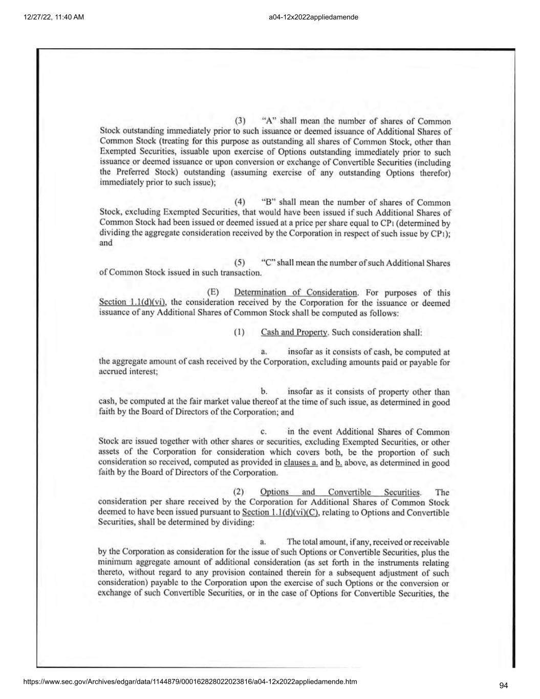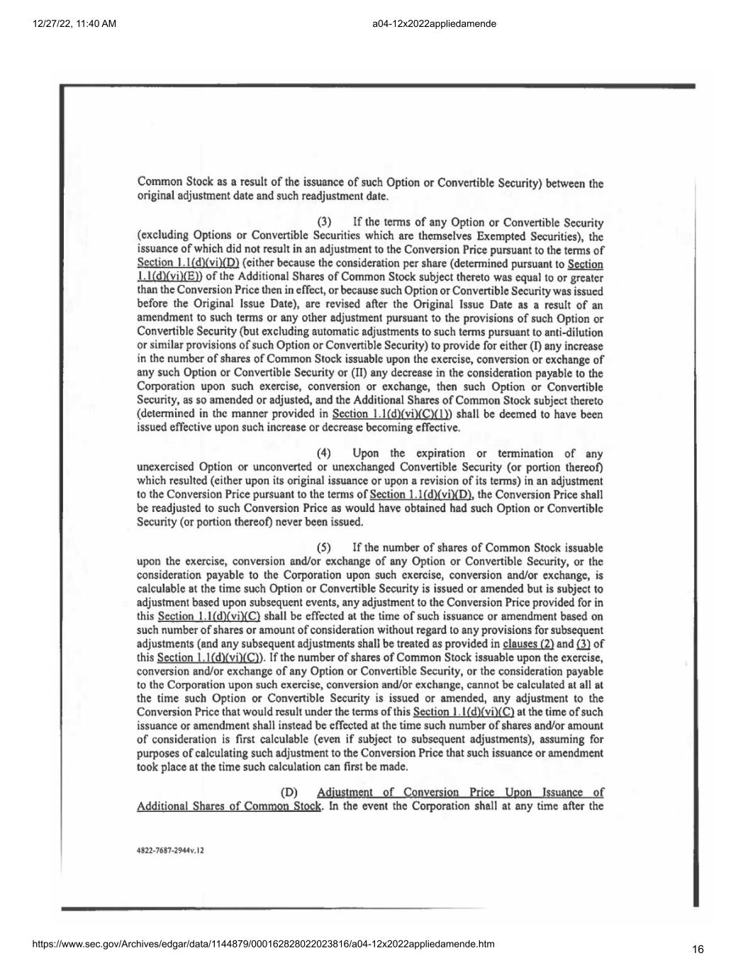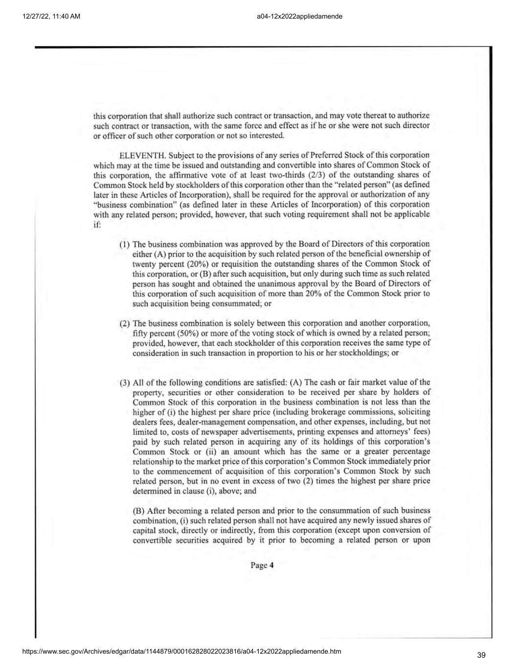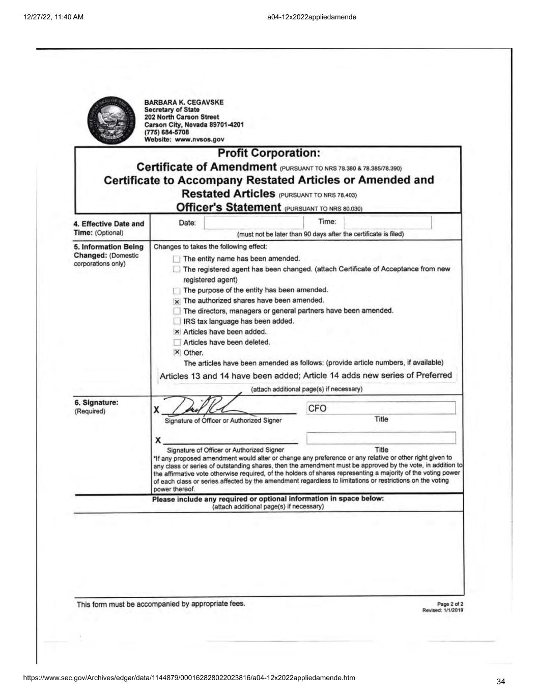 12/27/22, 11:40 AM a04-12x2022appliedamende https://www.sec.gov/Archives/edgar/data/1144879/000162828022023816/a04-12x2022appliedamende.htm Filed in the Office of Secretary of State State Of Nevada Business Number C13283-2001 Filing Number 20222245441 Filed On 4/12/2022 9:06:00 AM Number of Pages 1 2