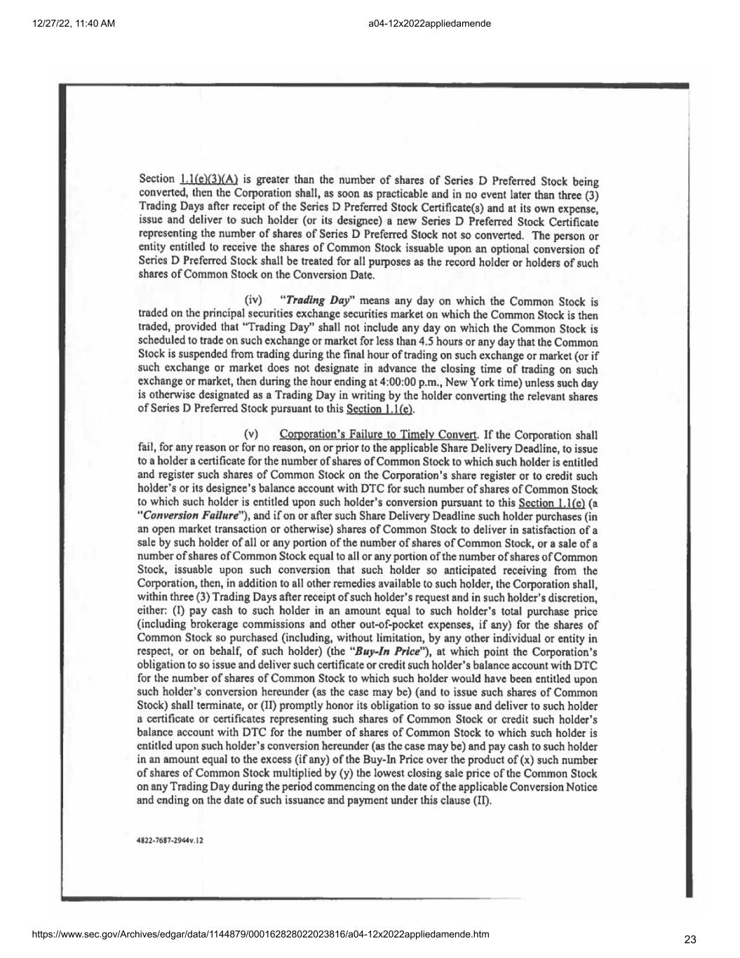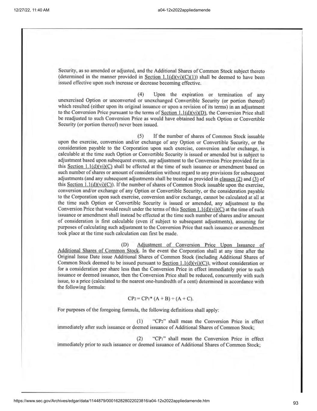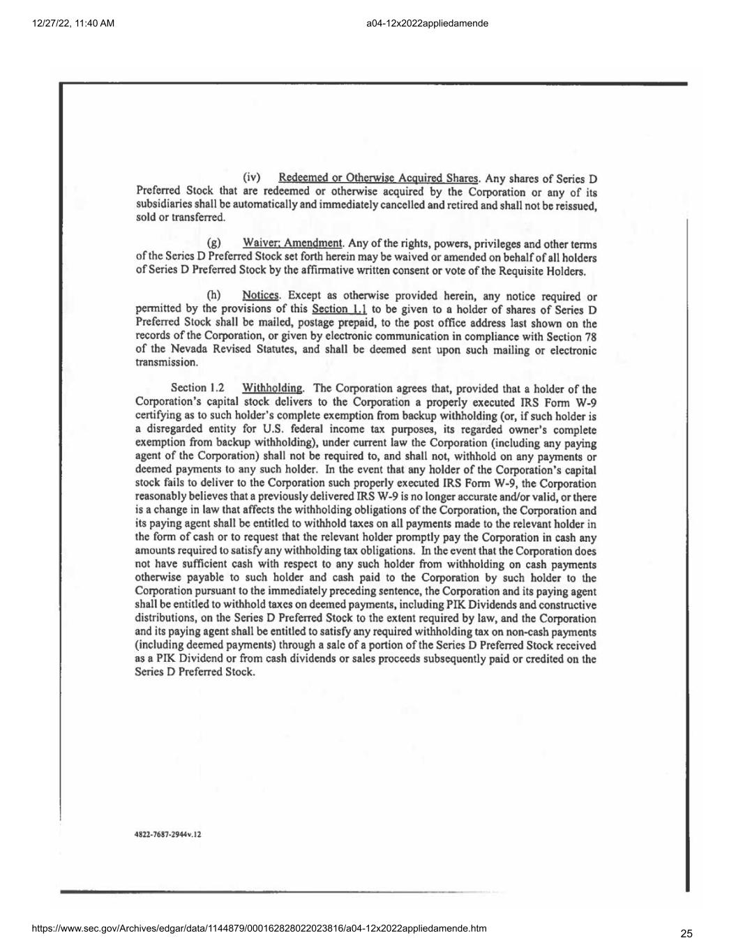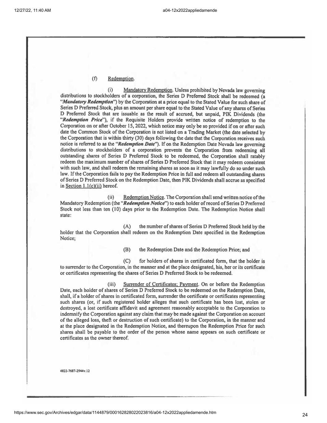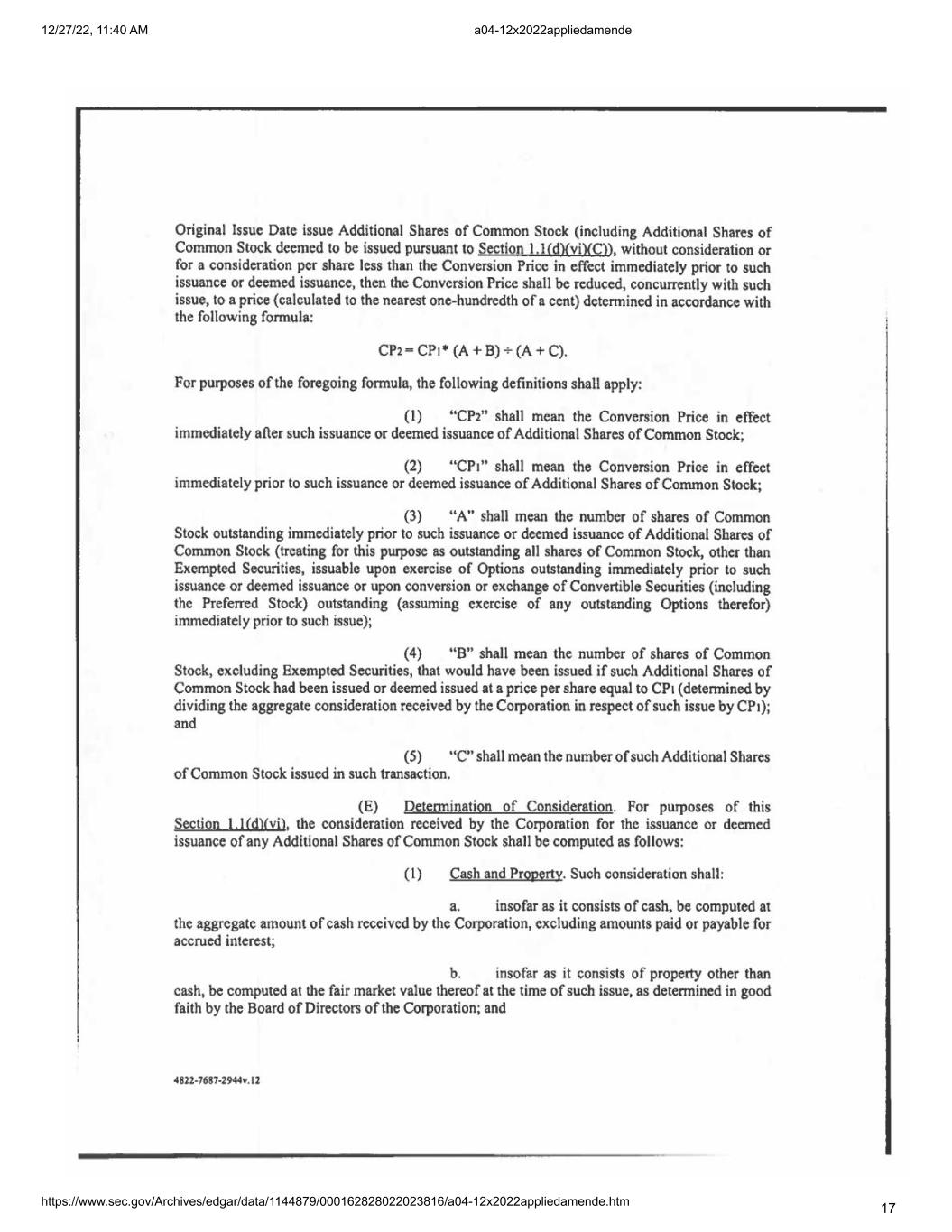 12/27/22, 11:40 AM a04-12x2022appliedamende https://www.sec.gov/Archives/edgar/data/1144879/000162828022023816/a04-12x2022appliedamende.htm Filed in the Office of Secretary of State State Of Nevada Business Number C13283-2001 Filing Number 20222245441 Filed On 4/12/2022 9:06:00 AM Number of Pages 1 2