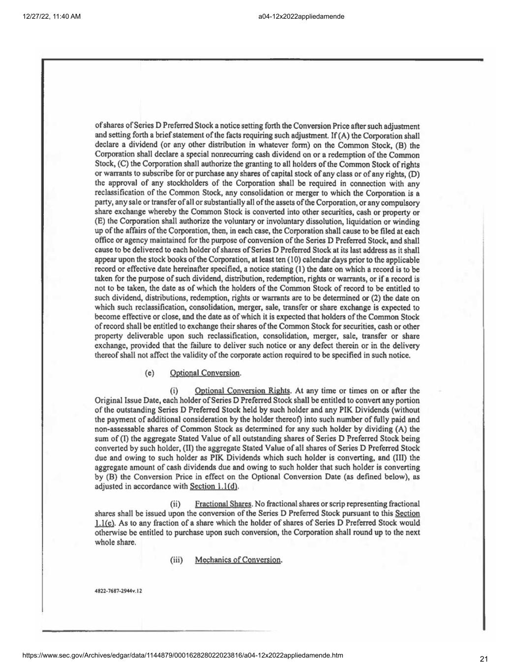 12/27/22, 11:40 AM a04-12x2022appliedamende https://www.sec.gov/Archives/edgar/data/1144879/000162828022023816/a04-12x2022appliedamende.htm Filed in the Office of Secretary of State State Of Nevada Business Number C13283-2001 Filing Number 20211456018 Filed On 5/13/2021 3:41:00 PM Number of Pages 2 29