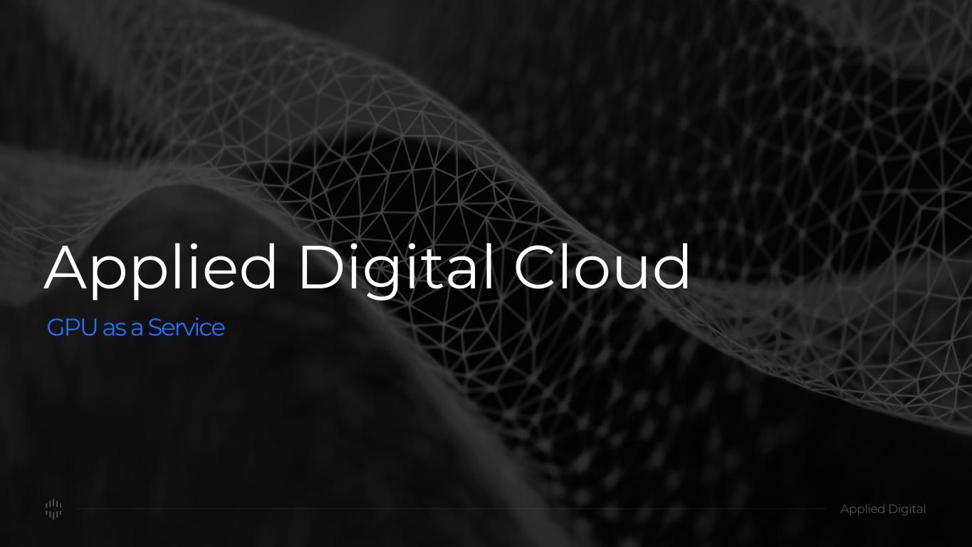 A P P L I E D D I G I T A L C L O U D Applied Digital Cloud, a wholly-owned subsidiary of Applied Digital, offers GPU compute solutions to help customers cost-effectively execute critical AI, ML, rendering, and other HPC workloads. Our infrastructure is purpose-built for high performance at low cost. Customers pay a fixed rate to the Company in exchange for a managed hosting environment supported by Company-provided equipment. Leading GPU Deployment Our access to cutting-edge GPUs enables us to drive substantial growth and scalability Supercomputer Experts Growth Potential Competitors' multi- billion-dollar valuations indicate strong prospects for raising capital for Applied Digital Cloud. Proven Success Signed leading AI clients like Togther.AI Deployed 4096 GPUs last quarter Our specialists ensure smooth deployments, enabling customers to leverage advanced expertise for optimal performance Applied Digital Cloud