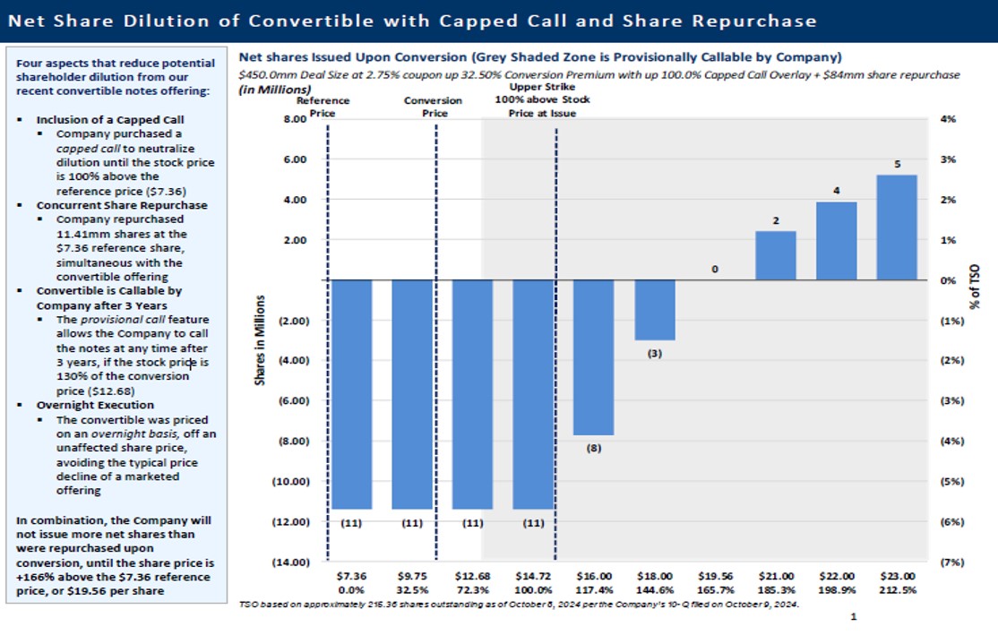 In conjunction with the issuance of the Convertible Notes, the Company entered into capped call transactions with a cap price of $14.72 (representing a premium of 100% over the last reported sale price) and, pursuant to share repurchases and prepaid forward repurchase transaction, repurchased approximately $84 million of the Company’s common stock