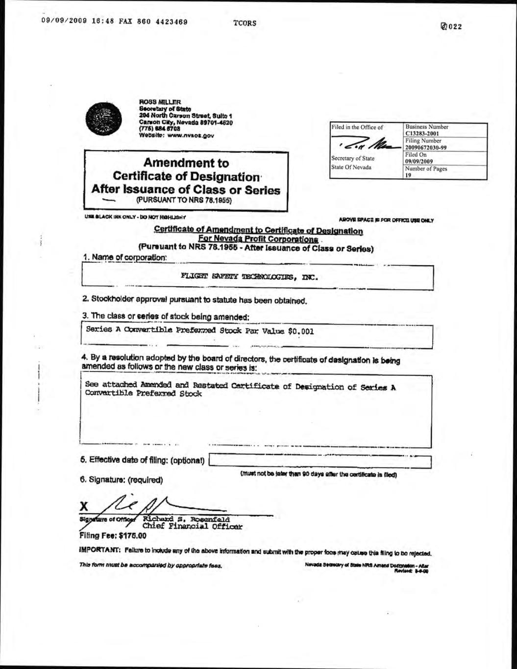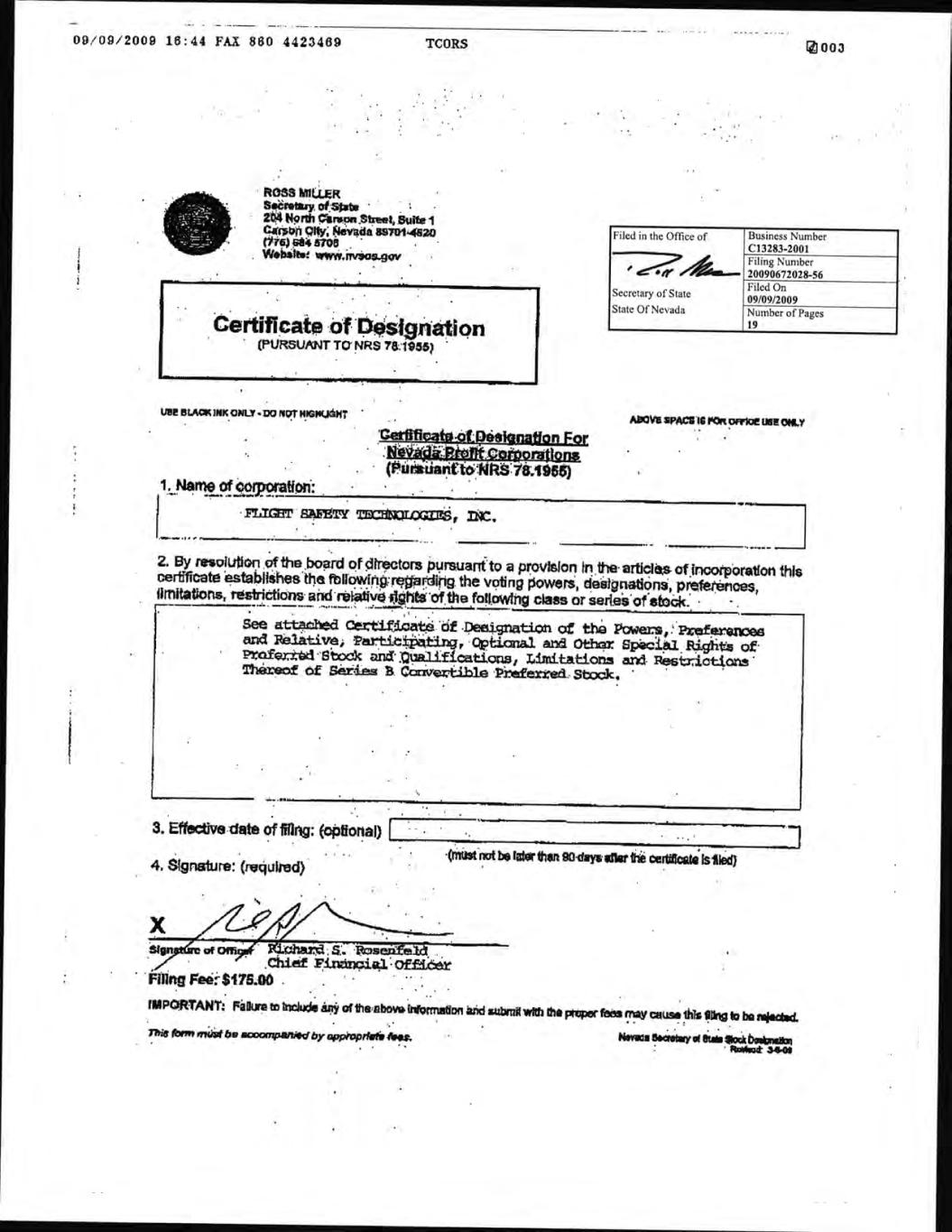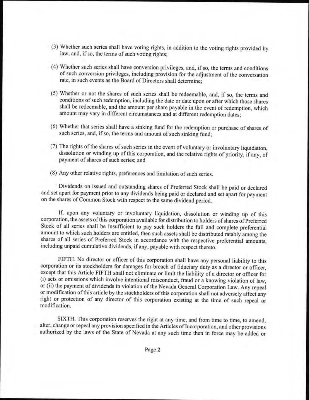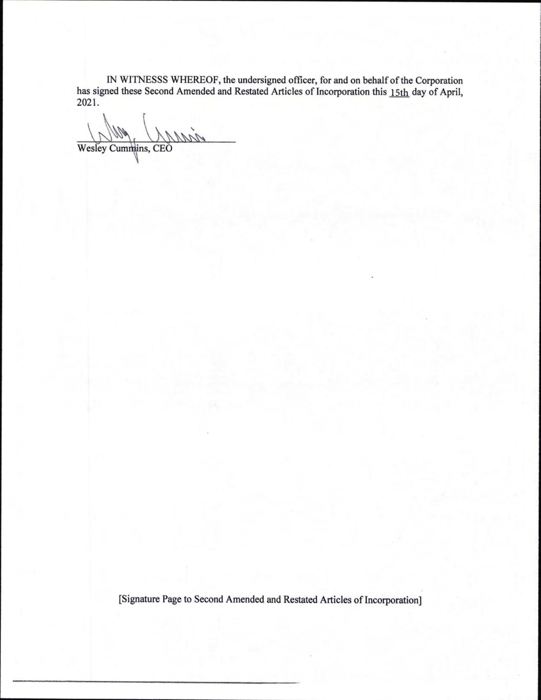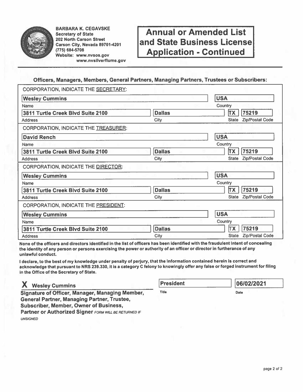 Filed in the Office of Secretary of State State Of Nevada Business Number C13283-2001 Filing Number 20211673333 Filed On 7/28/2021 10:57:00 AM Number of Pages 2